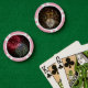 Dekorative Poker-Chips sorgen für exzellente Dekoration von Party oder Tischstreuen für ein Silvesterabend-Party. Karo unsere anderen Auflistungen für verschiedene farbige äußere Ringe und andere Designs. Personalisieren Sie es mit dem Namen Ihrer Gruppe. Zwei Seiten mit verschiedenen Bildern.