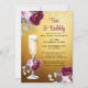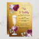 Moderne Silvester, moderne Urlaubsparty mit Champagnerglas und Blumenmotiven, vergoldeter Glitzer auf goldenem Hintergrund. Spaß & Bubbly Thema. Aquarell und goldener Glitzer.