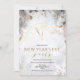 Silvesteruhr für Urlaub NeujahrKalligrafie Typografie Glitzer schimmernde Metallleuchten Weiß und Silber Einladung