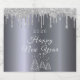 Ein Imitat silbermetallices Aussehen mit Imitaten silberne Glitzer Tropfen, ein bisschen Klingeltöne und Luxus für ein Silvester Party. Weihnachtsbäume, Winterwald als Dekoration. Mit dem Text: Happy New Year geschrieben mit einem modernen handgeschriebenen Stil Skript. Vorlage für ein Jahr, weiße Buchstaben.