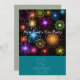 Abhalten Sie ein Silvester-Party? Eine Einladungskarte für ein stilvolles Silvester-Party. Diese stilvolle Karte zeigt eine freepische Illustration von bunten Feuerwerk vor einem schwarzen Mitternachtshimmel Hintergrund. Die Text- und Hintergrundfarbe ist vollständig auf Ihre persönlichen Daten abgestimmt.
