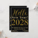 Das ist ein modernes und schicke Design, die Silvesterausgabe-Party Einladung. Es ist in elegantem Schwarz und Gold mit einem modernen Typografie Skript-Design. Es hat die Meldung "Hallo Neues Jahr! 2028" mit Platz für Sie das Jahr der Feier hinzufügen. Darunter haben Sie Platz, um Ihren Namen und die Details Ihres Party, einschließlich Ort, Zeit und UAWG-Informationen hinzuzufügen. Das Hauptmotiv "Neujahr!" wird auf der Rückseite wiederholt. Um zu personalisieren, fügen Sie einfach Ihren Namen, das Jahr der Feier und Party-Informationen, durch die Verwendung der Personalisierung dieser Schaltfläche, hier können Sie auch die Erholung des Textes ändern, wenn Sie gewollt. Karo aus dem Entwurfsbearbeitungsprogramm, um die Farbe oder den Schriftart zu ändern. Wenn Sie Hilfe bei Personalisierung, passenden Produkten oder für ein individuelles Design benötigen, kontaktieren Sie mich per zazzle Chat oder per E-Mail: ursuladawnmoon@gmail.com Frohes Neues Jahr!