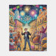Mit dieser faszinierenden Illustration tauchen Sie ein in den festlichen Geist Lateinamerikas. Diese lebendige Szene zeigt ein lebendiges Dorf, das im Neuen Jahr zum Ring zusammenkommt. Die Tanzfiguren sind mit farbenfroher traditioneller Kleidung geschmückt, während festliche Dekorationen wie blinkende Lichter, Konfetti und Bänder eine magische Atmosphäre schaffen. Im Mittelpunkt der Feier steht ein lächelnder älterer Mann, symbolisiert das Bestehen des alten Jahres. Er hält Pfeifen, die ein erfolgreiches Jahr vor sich haben: ein Weizenbündel, ein Sparschwein und ein kleines Haus. Der Hintergrund strotzt vor einem Feuerwerk, das den Nachthimmel über bezaubernden Gebäude im Kolonialstil erhellt. Dieses fröhliche Kunstwerk spiegelt das Wesen des feierlichen Geistes und die Hoffnung auf einen strahlenden Neuanfang wider. AI generiertes Bild mit DALLE