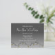 Festliches Silvesterabend Party 2024 Postkarte mit weißem Typografie-Design auf grauem Hintergrund. Mit individualisierbaren Buchstaben können Sie Ihren eigenen Familiennamen hinzufügen. Ein Bild mit weißen und goldenen Zeichenketten betont die Vorderseite der Karte. Ein festlicher Weg, um 2023 mit Freunden und Lieben zu feiern.