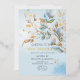 Feiern Sie einen stilvollen Neuanfang mit dieser luxuriösen Silvester-Einladung im Wasserfarben-Stil, die zarte blaue und goldene Blattmotive vor einem frostigen Winterhintergrund zeigt. Entworfen für Eleganz und Raffinesse, ist diese Einladung perfekt für Jahresendfeiern,