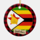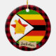 Ornamente: Rustikale Simbabwes dekorative Ornamente mit Simbabwes Fahne umgeben von roten und schwarzen Büffel karierten Mustern - Liebe meines Landes, Weihnachtsdekoration, nationale Patrioten / Sportfans