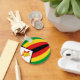Die Flagge Simbabwes wurde dem Kreisfob dieses Schlüsselanhängers geschickt angepasst. Eine praktische Erinnerung des simbabwischen Erbes.