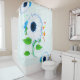 Dieses ausgeglichene Sonnenblumen-Duschvorhang-Kunstwerk mit Blumenelementen auf einem soliden, weißen Hintergrund mit farbenprächtigen Farbprägungen und dunkeltürkisfarbenen Diagonallinien schafft eine elegante Tiefe und Kontrast abstrakt.