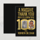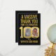 100th birthday two photos bold and simple gold on black thank you card . Great idea for adding some stylish simple thanks to your 100th birthday party favor bags. Personalize with your own two photos in the 00 of 100. Can be personalized with your own name and wording, currently reads A massive thank you for celebrating 100 years with Vernon Coleman. Other matching items are available and can be created by request. Unique gold 100 graphic by www.mylittleeden.com