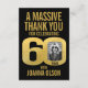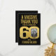 Sixtieth birthday photo elegant and simple gold on black thank you card . Great idea for adding some stylish simple thanks to your 60th birthday party favor bags or to send after your party as a thank you note. Personalize with your own photo in the 0 of 60. Can be personalized with your own name and wording, currently reads A massive thank you for celebrating 60 years with Joanna Olson. Other matching items are available and can be created by request. Unique gold 60 graphic by www.mylittleeden.com