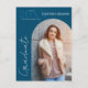 Mit dieser exquisiten Simple Arch Foto Blue Abschluss Announcement Postcard mit einer modernen Ästhetik und einem blauen Farbschema. Die Karte zeigt ein bogeninspiriert Muster, das Wachstum und Leistung symbolisiert. Personalisieren Sie es mit einem gepflegten Foto, das die Freude an der Leistung erweckt. Die zarte Kalligraphie verleiht dem Absolvent Raffinesse und zeigt den Namen und die Zeremonie der Details an. Diese Ankündigungskarte repräsentiert wunderbar ihre harte Arbeit und Hingabe. Teilen Sie den Stolz und die Freude des Abschlusses mit den Lieben durch dieses faszinierende und elegante Design.