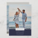Einfache marineblau Design Foto Beach Hochzeit speichern die Daten, ideal für eine Hochzeit am Strand. Das einfache Zwei-Foto-Design verfügt über ein Foto und Ihre Hochzeitsdetails auf der Vorderseite. Fügen Sie der Rückseite ein Foto der zweiten Verlobung hinzu.