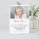 Send thanks for the kindness and compassion shown during your time of sorrow with these personalized photo thank you cards for a funeral, memorial or Celebration of Life event featuring a treasured photo of your loved one, your preprinted custom message and modern calligraphy script typography. The back is blank for the option of handwriting personal notes or add another photo in EDIT. ASSISTANCE: For help with design modification, transferring the design to another product or if you would like coordinating items, contact the designer BEFORE ORDERING via the Zazzle Chat MESSAGE tab below or email makeitaboutyoustore@gmail.com.