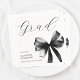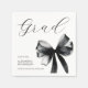 Simple Black and White Cute Bow Graduation Party Napkins design features elegant script calligraphy typography paired with a soft ribbon illustration that creates a refined coquette aesthetic. The minimalist black and white palette keeps the layout clean and timeless, while the delicate bow detail adds a feminine and sophisticated touch. The combination of bow artwork and script typography creates an elegant, modern design style that works beautifully for personalization and special occasion.