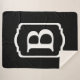 This blanket has an initial that you can change to show the correct monogram. A white letter is in on a black background with a white frame border.