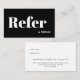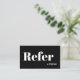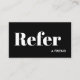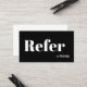 This stylish company "refer a friend" referral card includes bold typography and minimal black and white design.