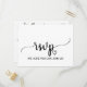 Diese einfache schwarze kalligraphische Song Anfrage UAWG postcard ist perfekt für eine rustikale oder moderne Themenhochzeit. Das minimalistische Design besticht durch einen eleganten Schriftart mit Pinselskripten und ein reizendes Frauenherz. Bauen Sie Ihre Hochzeitsgast-Liste und Ihre Tanzfläche-Liedliste auf einmal! Diese Hochzeitstitel-Postkarte frage den Gästen bequem, ob sie an Ihrer Hochzeit teilnehmen können, und auch, welches Lied sie zum Tanzen bringen wird.
