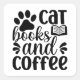 Simple Black "Cat Books and Coffee" Lover Gift Quadratischer Aufkleber
