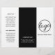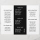 Berufliche und moderne Dreierbroschüre mit einem schlichten und eleganten Design in Schwarz und Weiß. Die Frontblende hat Ihr Logo und Ihren Firmennamen. Die Rückseite hat Ihre Kontaktinformationen und das Innenfaltfeld hat zwei Header und Textfelder. Verwenden Sie die Vorlage, um Informationen über Ihr Unternehmen auf den äußeren Tafeln und eine Preisliste / Service-Menü in der mittleren Leiste hinzuzufügen. TIPP ENTWICKLUNG: Sie können Text und Hintergrund in jede gewünschte Farbe ändern, indem Sie auf den Button "Anpassen" klicken.