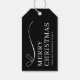 Simple black modern Merry Christmas heart ornament custom family name gift tag