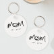 Simple Black Script Heart Keepsake Mom Established Keychain.