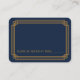 Diese Platzkarten sind mit einer blauen und goldenen Farbpalette, einem geometrischen Rahmen und anderen stilistischen Details inspiriert, die alle durch Art Deco und die rauschenden Zwanziger Jahre. Sie können die Textfelder des Beispiels nach Ihren Wünschen anpassen.
