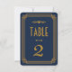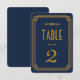 Diese Tischnummern sind mit einer blauen und goldenen Farbpalette, einem geometrischen Rahmen und anderen stilistischen Details inspiriert, die alle durch Art Deco und die rauschenden Zwanziger Jahre. Sie können die Textfelder des Beispiels nach Ihren Wünschen anpassen.
