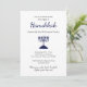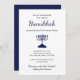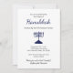 Hanukkah Party Einladung, mit einer einfachen blauen Menorah und Schrift Typografie Design. Mit blau anpassbaren Buchstaben können Sie Ihre eigenen Informationen hinzufügen. Ein festlicher Weg, um die erste Nacht von Chanukah mit Freunden und Familie zu feiern.