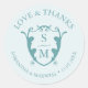 Diese Hochzeitsaufkleber verfügen über ein klassisches Monogramm-Wappen in sanftem Blau und schaffen eine moderne und elegante Touch für Ihre Gastgeschenke Hochzeiten oder Verlobungsfeiern. Dieses Dankeschön-Sticker wurde mit einfacher Typografie entworfen und ermöglicht es, die Initialen, Namen und Datum der Braut und des Bräutigams mithilfe der einfachen Vorlagenfelder zu personalisieren. Eine zeitlose Wahl für klassisches Hochzeitsdekor. Weitere Designs finden Sie unter www.zazzle.com/dotellabelle.