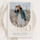 Moderne Arch Simple Boho Drei Foto Abschluss Foil Einladung verfügt über ein Foto auf der Vorderseite und zwei Fotos auf der Rückseite zusammen mit Abschluss Einladungsdetails.