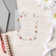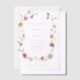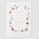 Die Einladung zu einer gemütlichen Vellum Hochzeit mit einer farbenfrohen Wildblume mit einer Mischung aus rosa, blauen, orangefarbenen, lila und grünen Blume und Blätter. Die Illustration rahmt Ihren schwarzen, klassischen Text mit Akzenten moderner rustikaler Schrift ein, alles auf einem transparenten Vellum-Hintergrund.