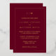 Einfache Hochzeitseinladung mit modernem und elegantem Design mit zwei Buchstaben-Monogramm oben und Ihren Details umgeben von einer dünnen Grenze. Dieses Design ist mit echter Goldfolie auf bordeauxrotem Hintergrund bedruckt. Ein elegantes und stilvolles Design, das sich ideal für ein minimalistisches Paar eignet.