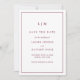 Einfache bordeauxrote Save the Date Karte mit modernem und elegantem Design, oben mit zwei Buchstaben-Monogramm und in einem dünnen Rahmen mit Ihren Hochzeitsdetails. Die Schriftart und Hintergrundfarben können beliebig verändert werden. Ein elegantes und stilvolles Design, das sich ideal für ein minimalistisches Paar eignet.