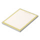 This notepad features your name in small spaced lowercase lettering at the top with a soft yellow chartreuse border all the way around the page. It's a clean, simple design that looks great on a desk — understated but personal. Add a name and it makes a lovely gift for anyone who appreciates nice stationery.