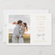 Schick und elegant. Diese wunderschöne Save the Date Karte zeichnet sich durch einen hübschen, cremefarbenen Schleifenbogen aus Aquarellfarben, zeitgenössischen Goldimitat-Schriftart vor weißem Hintergrund und Foto aus. Optionale Paar-Initialen auf der Rückseite mit wiederholtem Farbband-Detail. Diese Karte ist unvergesslich und einzigartig und vermittelt ein Gefühl von Eleganz, Freude und Charme.