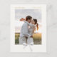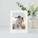 Schick und elegant. Diese wunderschöne Save the Date Postkarte bietet einen hübschen, cremefarbenen Ribbon-Bogen, zeitgenössischen Goldimitat-Schriftart vor weißem Hintergrund und Foto. Diese Karte ist unvergesslich und einzigartig und vermittelt ein Gefühl von Eleganz, Freude und Charme.