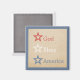 Einfache Chic Stars 4. Juli Magnet mit einem Imitat texturierten Papier Hintergrund und einem Trio aus roten, weißen und blauen Sternen. Dieser stylische Magnet ist eine großartige Möglichkeit, um Ihre patriotische Seite auf der Zuhause oder im Büro zu zeigen! Das Produkt zeigt den Satz "Gott segne Amerika", kann aber stattdessen mit Ihrem eigenen Text angepasst werden.