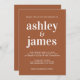 Einfache und schicke Hochzeitseinladung mit weißer stilvoller, eleganter und moderner Typografie auf Terrakotta-Hintergrund. Fügen Sie einfach Ihre Hochzeitsdetails hinzu. Exklusiv für Sie entworfen von Happy Dolphin Studio. Wenn Sie Hilfe oder passende Produkte benötigen, kontaktieren Sie uns bitte unter happydolphinstudio@outlook.com. Wir helfen Ihnen gerne, Ihre Hochzeit zum schönsten Tag zu machen!