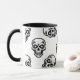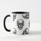 Simple Classic White Pixelated Skull Pattern Mug! This design depicts a simple, classic white skull in a random pattern across the entire mug, giving something to look at from every direction. The skull is pixelated to give a lighter, more fun feel to it. This can be for any event, occasion, or even everyday use!