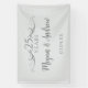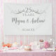 Create a beautiful custom wedding anniversary party banner by adding the couple's names and anniversary date to this sign. You can also choose to add more custom text below the names. My original designer faux silver gradient wisps of streamers radiate from both sides of the script, "25 Years". Personalize this simple grey welcome sign with the couple's name written in dark grey modern, elegant typography. Add the wedding anniversary date at the bottom or custom text. All the text on the light grey background is editable. You can also edit the number for a 60th anniversary, or 10th, or 50th or any anniversary you need. This would be a lovely wedding anniversary party banner for a wedding or anniversary party. You could also add "Happy Anniversary", "Congratulations". See my silver 25th wedding anniversary party collection for matching stemware, favors, invitations and table decor.