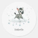 Cute baby shower or birthday sticker featuring adorable little male zebra with some blue love hearts