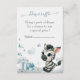 Cute boy baby diaper raffle enclosure card featuring adorable little male zebra with some blue love hearts sitting on clouds