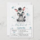 Cute boy baby shower invitation featuring adorable little male zebra with some blue love hearts