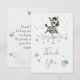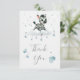 Cute thank you card featuring adorable little male zebra with some blue love hearts