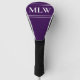 A white monogram is on this dark purple golf head cover. You can edit the text to show the correct monogram.