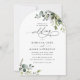 Simple Dusty Blue Eukalyptus Greenery Arch Wedding Einladung