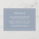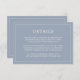 Einfache Hochzeitszimmerkarte mit modernem, aber elegantem Design mit Details, die von einem dünnen Rand umgeben sind. Der gesamte Text ist in Weiß auf einem staubigen blauen Hintergrund. Die Schriftart und Hintergrundfarben können durch Anklicken des Buttons "Anpassen" in beliebig viele Farben geändert werden. Ein elegantes und stilvolles Design, das sich ideal für ein minimalistisches Paar eignet.
