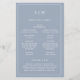 Einfaches Hochzeitsprogramm mit modernem und elegantem Design, oben mit zwei Buchstaben-Monogramm und Ihren Details, umgeben von einer dünnen Grenze. Der gesamte Text ist weiß über einen staubblauen Hintergrund und kann im Entwurfsbearbeitungsprogramm geändert werden. Die Vorderseite hat Ihre Reihenfolge der Zeremonie und der Hintern hat Ihre Hochzeitsfeier und danke Ihnen Nachricht. Ein elegantes und stilvolles Design, das sich ideal für ein minimalistisches Paar eignet. Diese billigen Hochzeitsprogramme werden auf Papierbögen gedruckt, um eine preisgünstige Option zu erhalten.