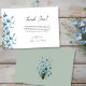 This simple card is a wonderful way to thank your wedding guests for celebrating your special day with you. The elegant design features a spray of dusty blue flax or periwinkle wildflowers along the left hand side, with the text on the right. The title and signature are written in modern script lettering and the back is a lovely sage green color.