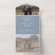 Personalisieren Sie Ihr eigenes Simple Dusty Blue Trendy Foto Wedding All in einer Einladung.